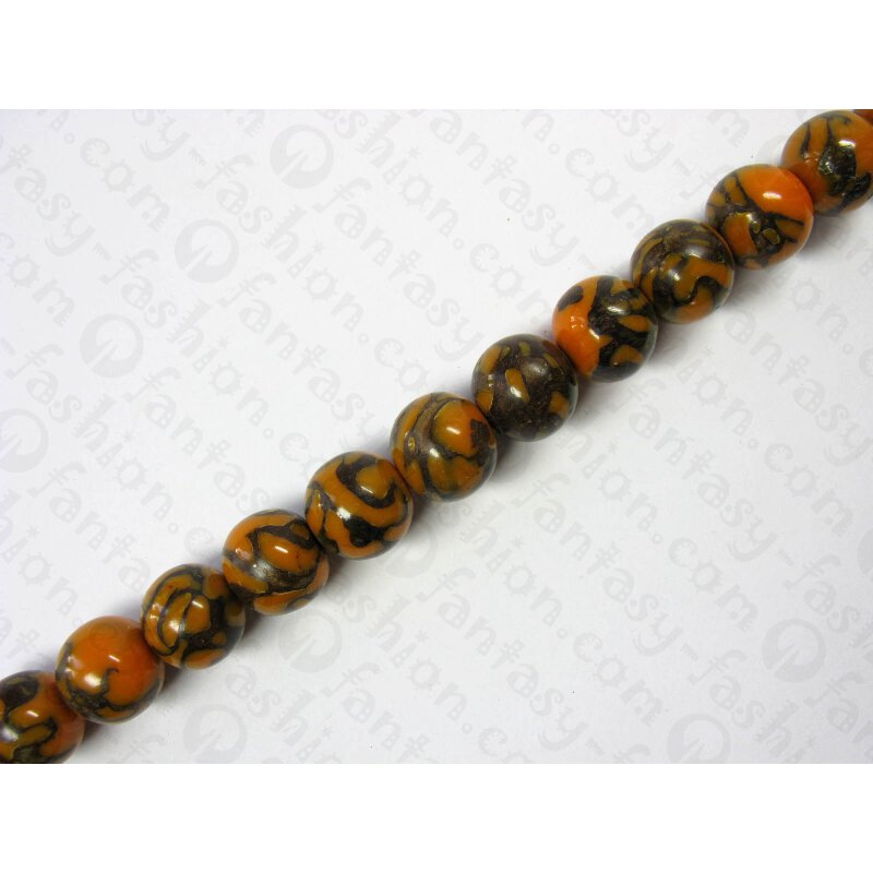 Orange resin ball beads w. 'anay' inlay, ca.18mm