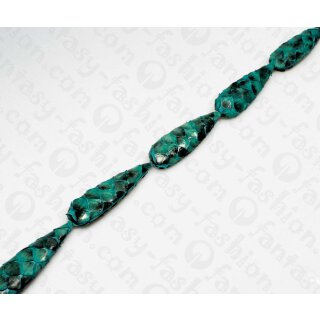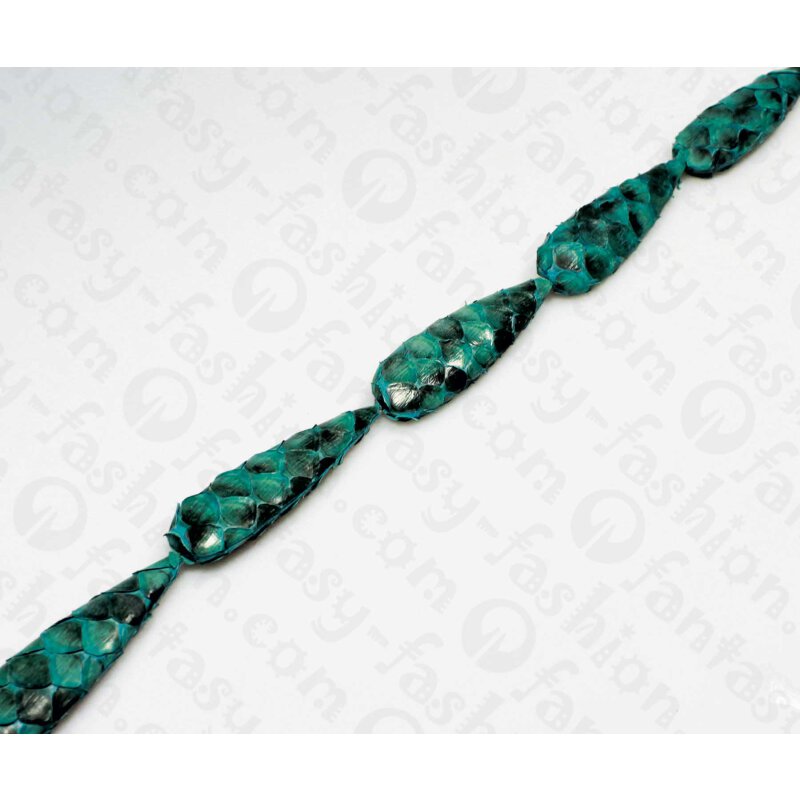 PY 047 Python leather Long Teardrop 68x20x10mm Ocean Blue Shiny / 6pcs.