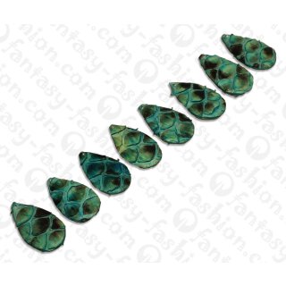 PY 077 Python leather Flat Teardrop 35x20x4mm Ocean Blue Matte / 8pcs.
