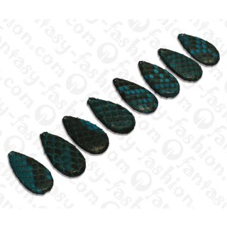 PY 079 Python leather Flat Teardrop 35x20x4mm Navy Blue / 8pcs.