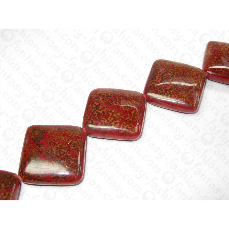 Resin Square round.edg.'go-od'inlay red ca.36x12mm