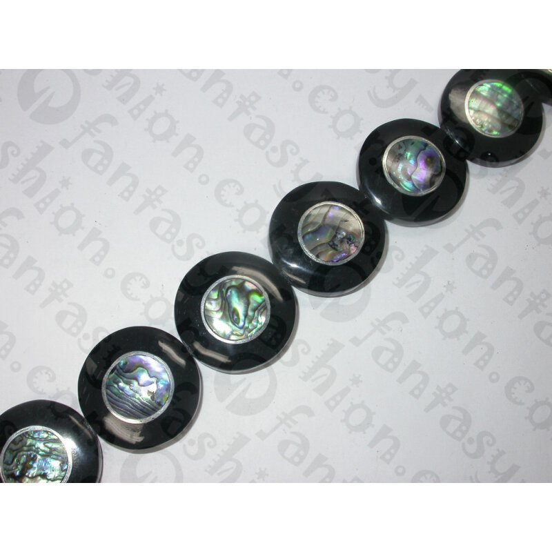 Resin with 'paua' shell inlay, round, ca. 32x8mm