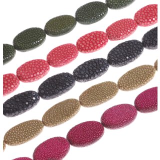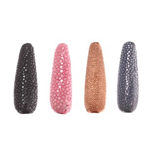 First the leather is tanned and then sanded so that it gets the wonderful shine. Due to the different nature of each stingray skin, the color result after the tanning process can always be slightly different. This reinforces the uniqueness of every piece of jewelry.
