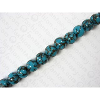 Turq. resin ball beads w. 'anay' inlay, ca.18mm